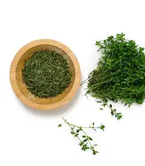 Thyme (Thymus vulgaris) is an herb with a distinct smell. The flowers, leaves, and oil are commonly used to flavor foods and are also used as medicine. Thyme contains chemicals that might help bacterial and fungal infections. It also might help relieve coughing and have antioxidant effects.